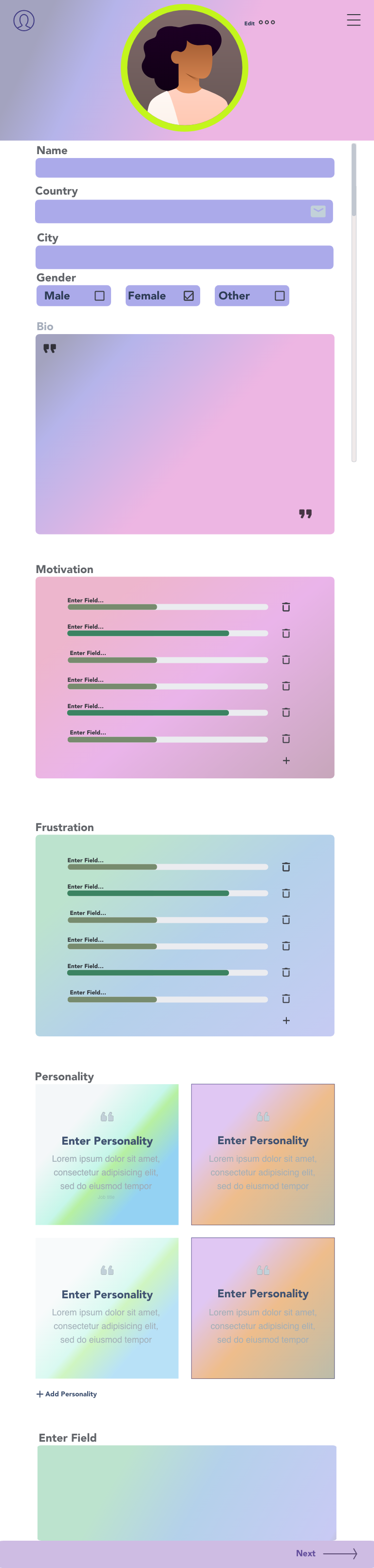 For my final university year project, i was tasked by a professor of Human Computer Interaction to design an app that can aid people in creating personas. Personas are commonly constructed during a user-centred design process. This project would design and build an app for creating personas. It would entail a careful analysis of the different kinds of personas that are used, undertaking user research and testing with user experience designers, designing and building the app.
